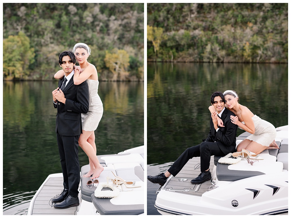 The grand finale? The bride and groom drifting away from the dock in a boat! It was the perfect lakeside getaway moment that felt like a vintage postcard. It was an ode to Old Hollywood sophistication, reimagined in a Texas lakeside setting.