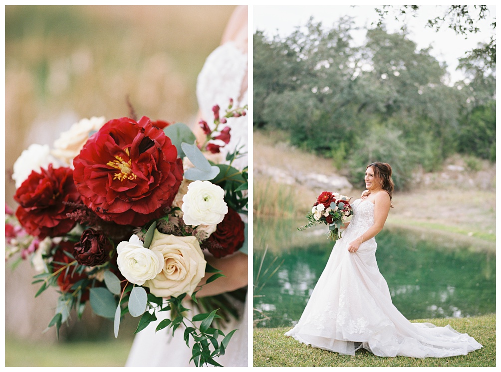 The first look took place at the pond, one of the most versatile portrait locations on the property. The diffused light created a soft, even look across the water. All of the first look photos above were taken on film.